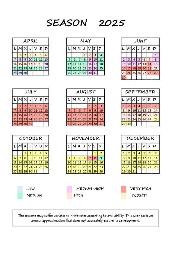 We adjust the seasons to the maximum, although they may be subject to variations along with the rates at the discretion of the establishment according to availability.
