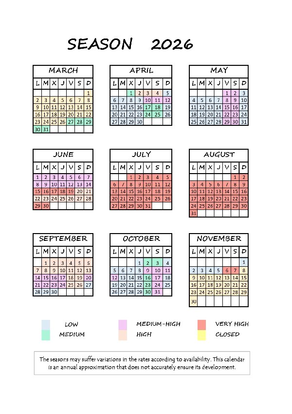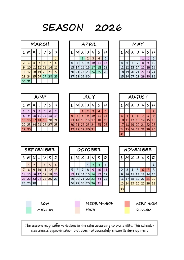 We adjust the seasons to the maximum, although they may be subject to variations along with the rates at the discretion of the establishment according to availability.